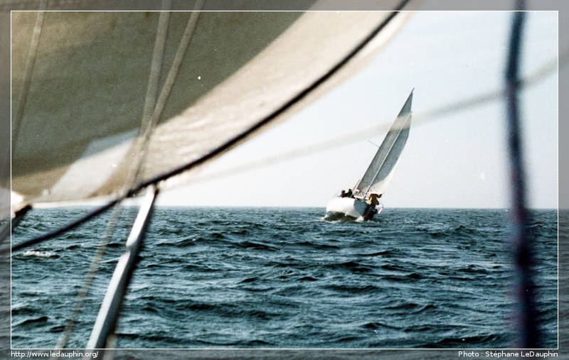 Fin Aout 1991, Jojo nous organise une descente du Conquet vers l’île de Sein. Cap au Sud, beau temps, du vent pile comme il fallait, … que dire de plus.